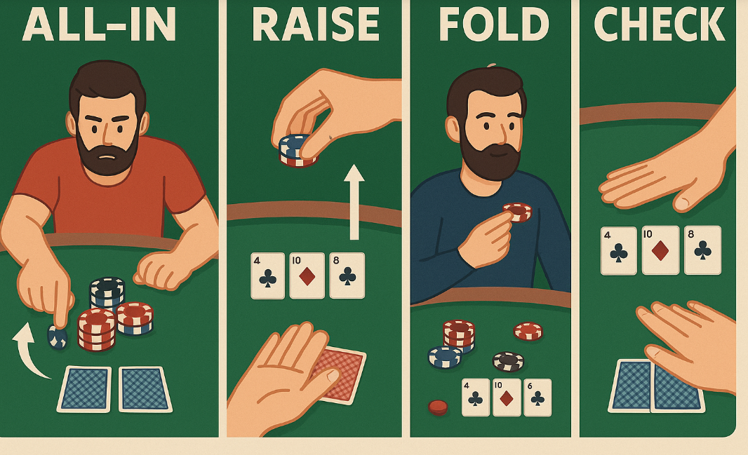 若遭到再次加注,則形成 Re-raise(再加注),甚至進一步All-in。